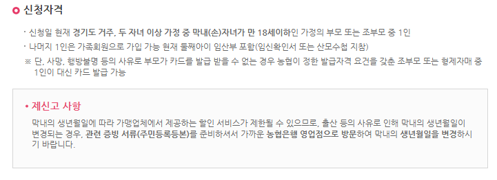 - 카드 발급은 경기도에 거주하는 학부모여야 해요.