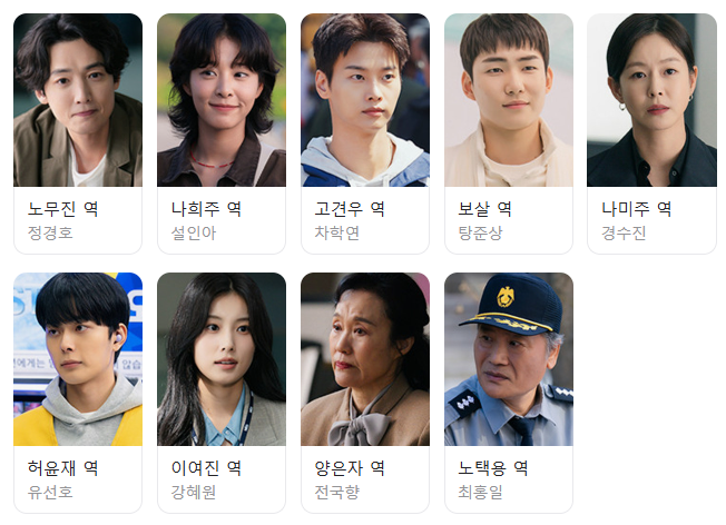 • 조연: 사건의 피해자와 가해자 역할을 맡은 인물들이 매 회 새롭게 등장