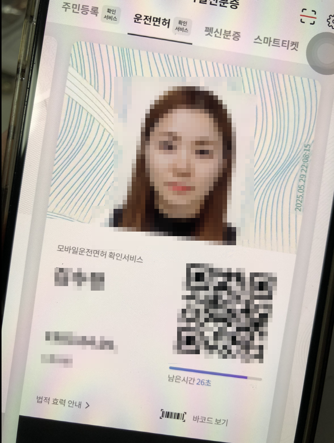 - 운전면허증: QR코드 또는 NFC 인식
