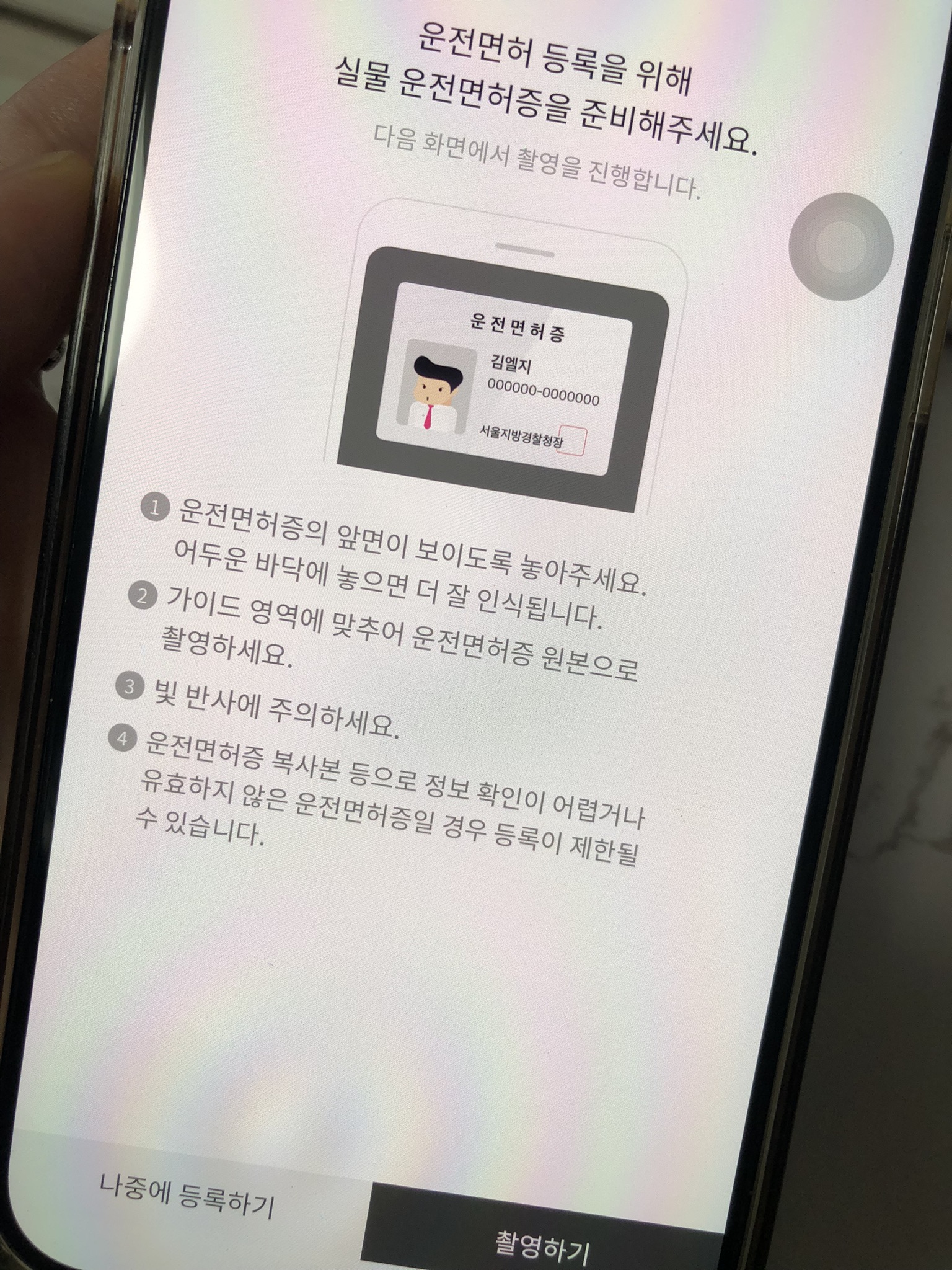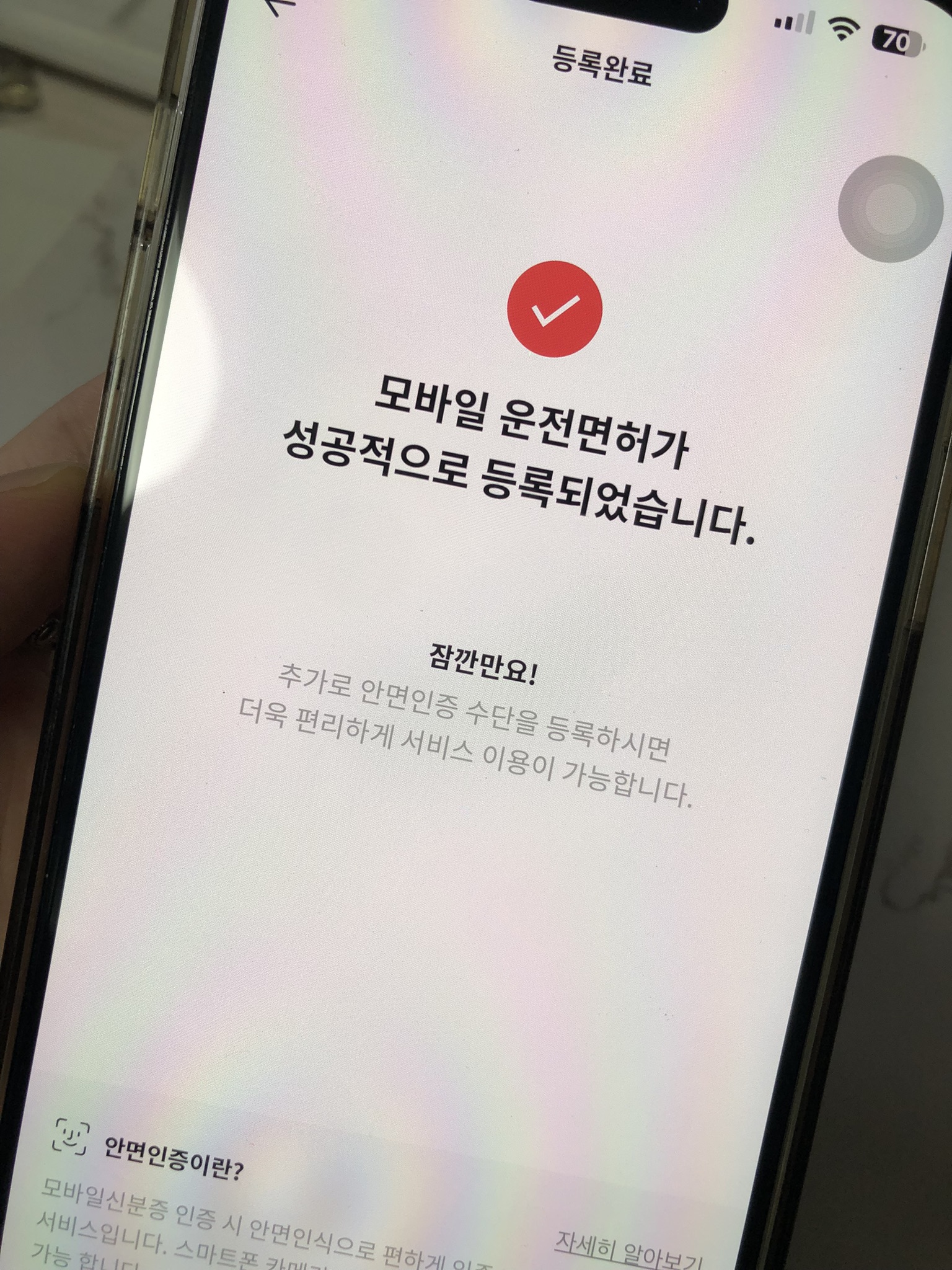 - 모바일 운전면허증 또는 주민등록증 등록 완료