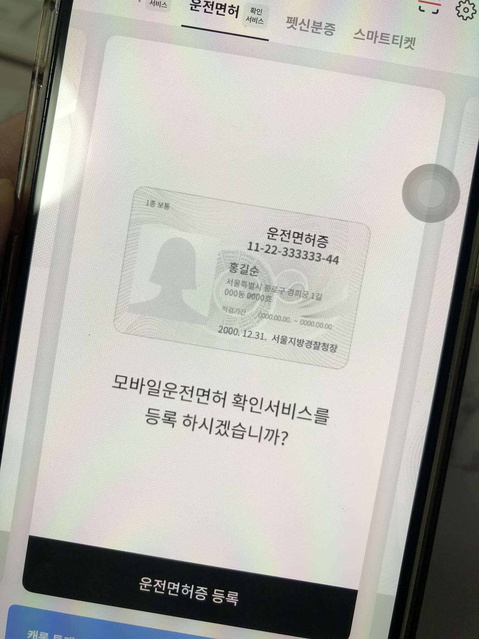 - 모바일 운전면허증 또는 주민등록증 등록 완료