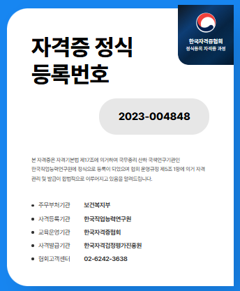 - 다만 국가공인 자격증이 아니라 기관마다 기준이 다르고, 급여·처우도 차이가 크다는 점은 유의해야 해요.