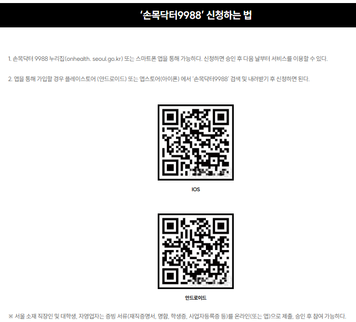 - 앱스토어/구글플레이에서 ‘손목닥터 9988’ 검색 후 설치