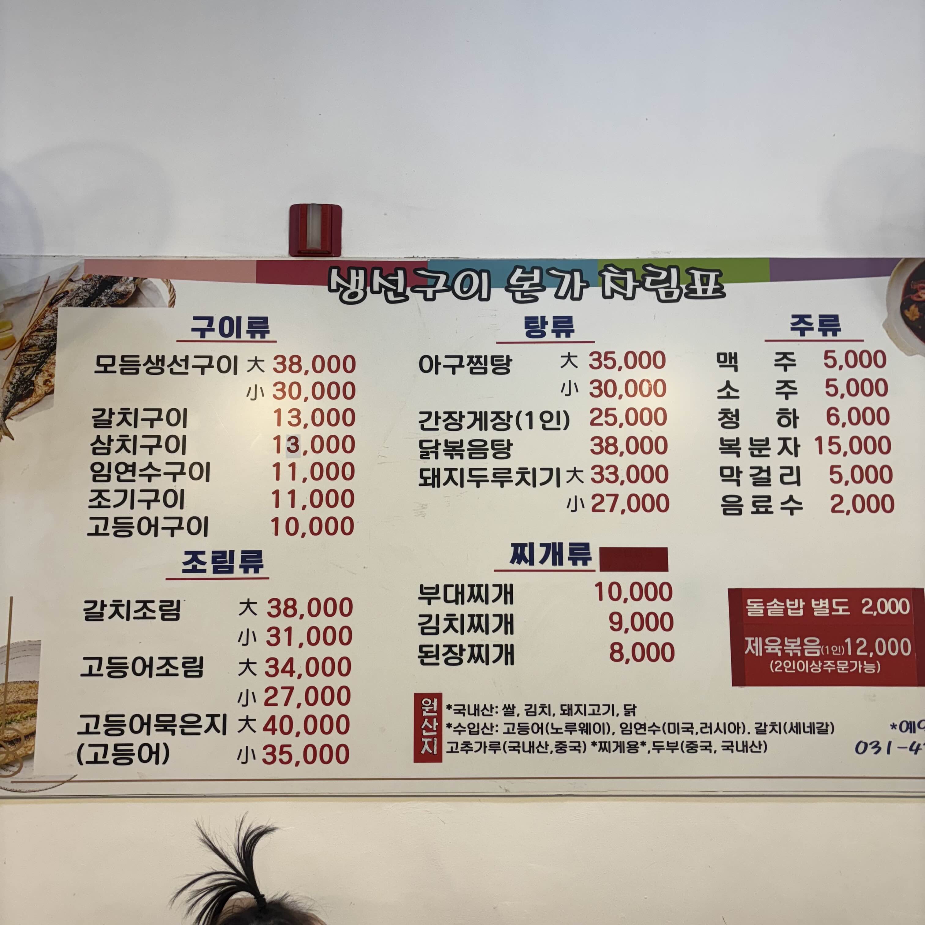 생선구이뿐 아니라 찜류, 조림류, 탕류까지 다양하게 준비되어 있어 선택의 폭이 넓다.