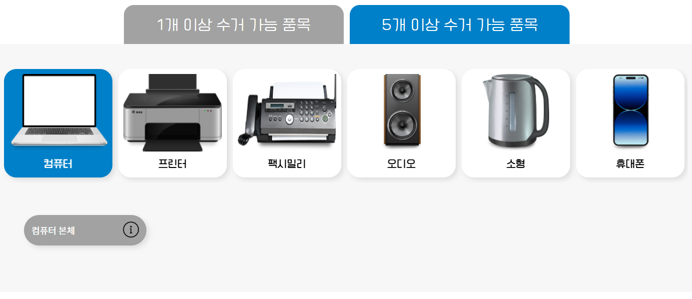 • 프린터(5kg 이상), 모니터, 데스크탑 등은 함께 수거 가능!