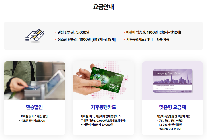 한강 수상버스의 가격 유형은 일반, 청소년, 어린이, 그리고 단체 요금으로 나누어 집니다. 각 가격 유형에 따라 할인 혜택이 다르므로, 목적에 맞는 요금을 선택하세요.